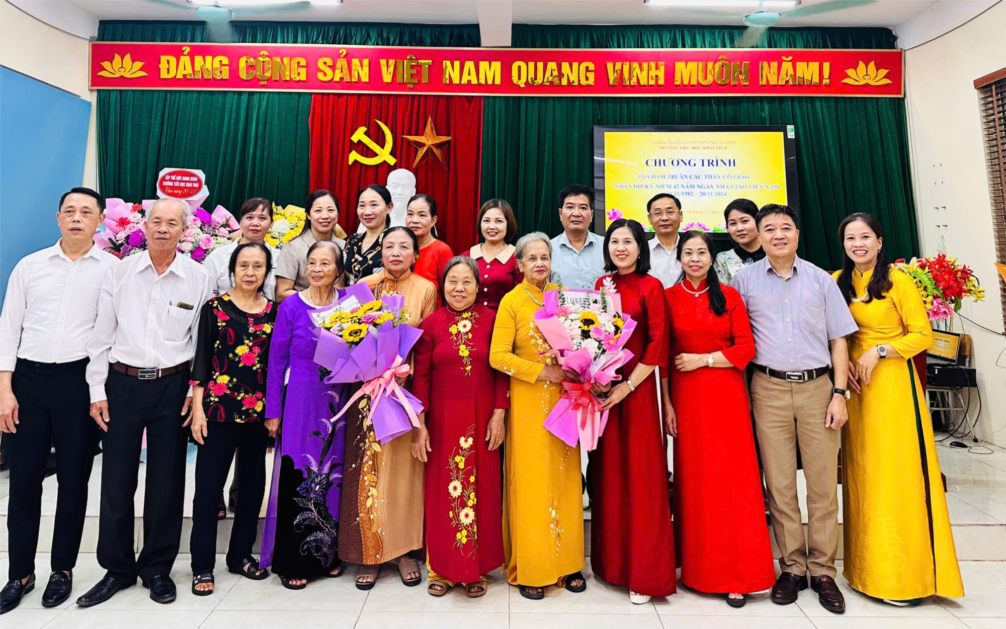 Nhà trường cũng vinh dự được chào đón các thầy cô giáo là cựu quản lý, giáo viên, nhân viên đã từng công tác tại trường. Các phu quân, phu nhân của các thầy cô giáo. Đại diện hội CMHS cũng về tặng hoa chúc mừng nhân dịp đặc biệt này.