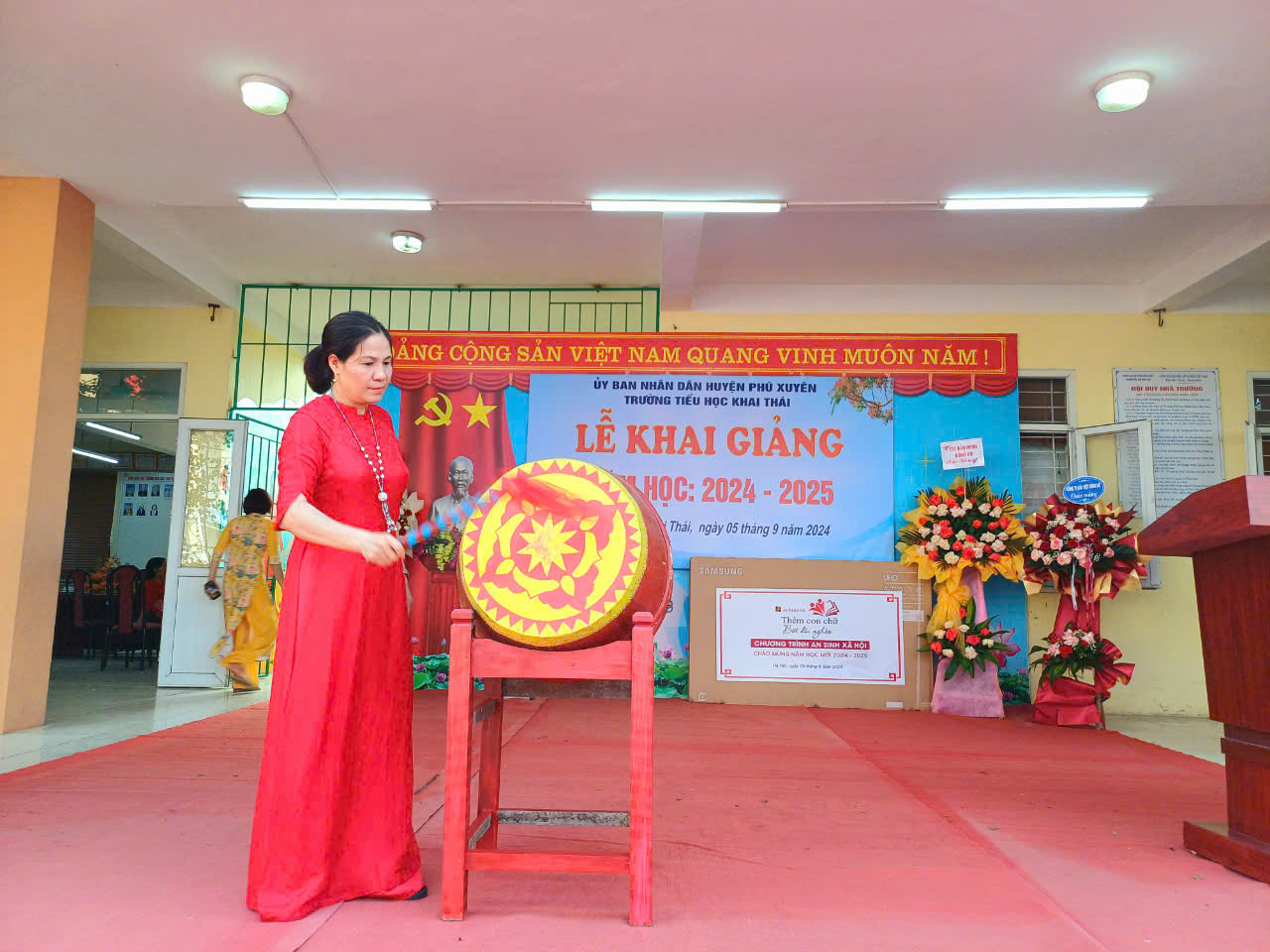 Cùng các ông bà đại diện các ban ngành đoàn thể trong xã, đại diện cấp ủy và chính quyền các thôn trên địa bàn xã Khai Thái, đại diện hội cha mẹ học sinh về dự và chúc mừng Lễ Khai Giảng năm học 2024-2025.